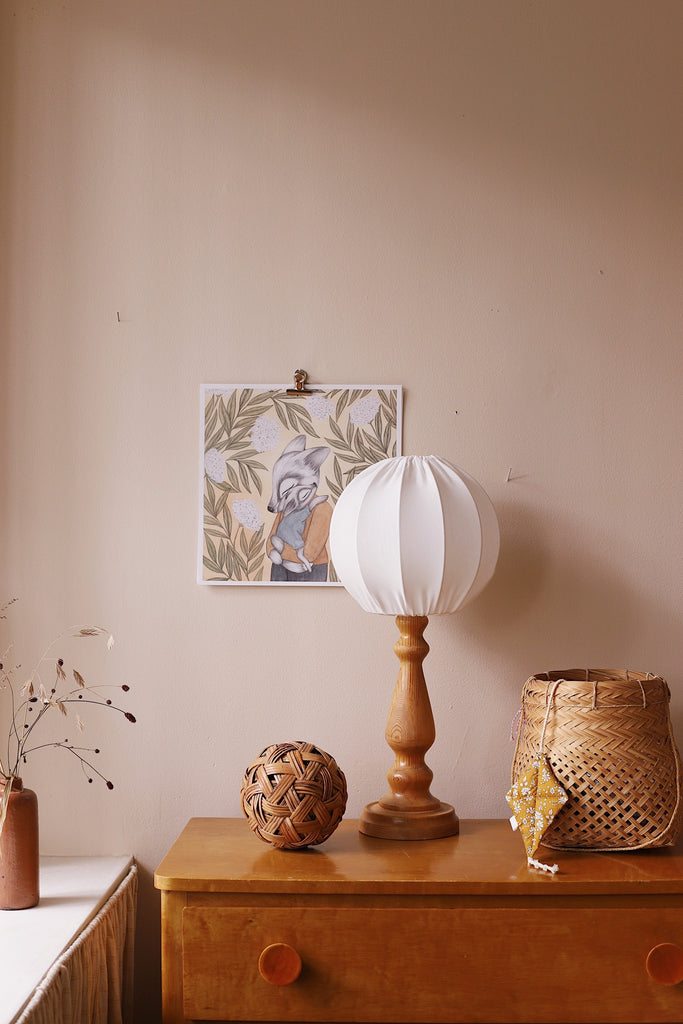 Våra populära tyglampor är gjorda för hand i Sverige, från start till färdig lampa. Lampskärmarnas stommar svetsas med erfaren hand i en liten verkstad inte långt ifrån oss. Där pulverlackeras de sedan i ugn med färg av marknadens bästa kvalitet. På snällaste vis för både hantverkaren och vår natur. När det är dags att klä lampskärmarna med tyg väljer vi GOTS-märkt ekologisk bomull. Vissa lampskärmar kallar vi Vintage. De kläs i vackert, återbrukat tyg som tvättats i miljövänlig såpa. Alla våra tyglampor passar bra i alla rum, men de som har en lite mer lekfull form blir extra fina i barnrummet. De är självklart lika omsorgsfullt tillverkade och lika miljövänliga som alla våra lampor och finns samlade under Barnlampor i menyn.